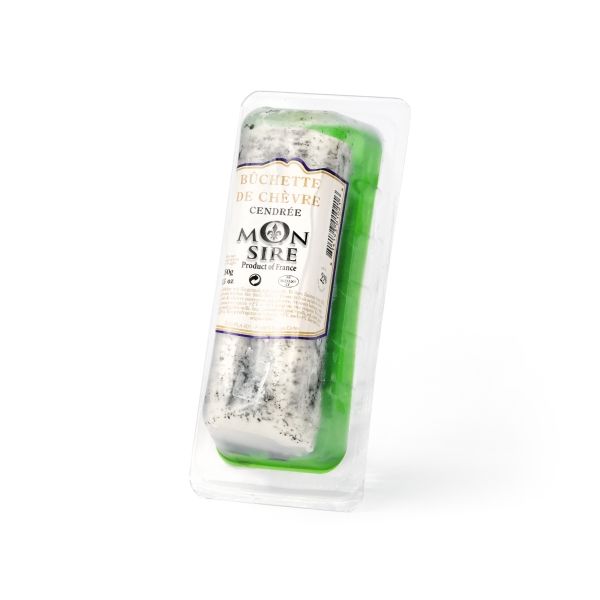 Buchette with Ash is a soft, pasteurized, goat's milk cheese from Fromage de Chevre, located in France. It is a mild and tangy, fresh chevre with a slightly moist texture. This fresh goat cheese log is rubbed with vegetable ash, which gives it a clean, slightly salty and citrusy flavor. Imported directly from France, it arrives fresh and full of flavor. Each comes packaged in its own protective plastic shell. This protective shell preserves the atmosphere and halts the product's development, therefore guaranteeing a constant level of quality and freshness. Top the fresh goat cheese with salt and pepper and drizzle with olive oil. You can also use it as a spread over toasted bread and drizzle with honey. One 5.4 oz log in a plastic container.