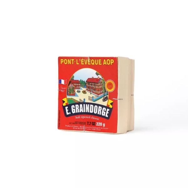 Pont l'Eveque (sometimes known as Leveque Cheese) is a soft, cow's milk cheese from France and certainly one of our most popular French cheeses. It is similar to a camembert, but the rind is washed before aging with a brine solution that makes it moist. This gives it a much more pronounced flavor and a rustic aroma. An AOC controlled cheese, Pont l'Eveque's manufacture is bound to strict quality control and very particular processes to maintain authenticity. Probably the oldest Norman cheese, it takes two liters of milk to make one Pont l'Eveque of 8.8 oz. . The interior is creamy yellow, fine-textured, and smooth. It sinks under pressure but has no elasticity. As the cheese ripens, the rind grows sticky and reddens, and small holes spread through the cheese. Further ripening will result in an interior that glistens with fat when cut. There are lingering traces of sweetness in the taste. Each unit is 7.7 oz and comes in an individual wooden box.